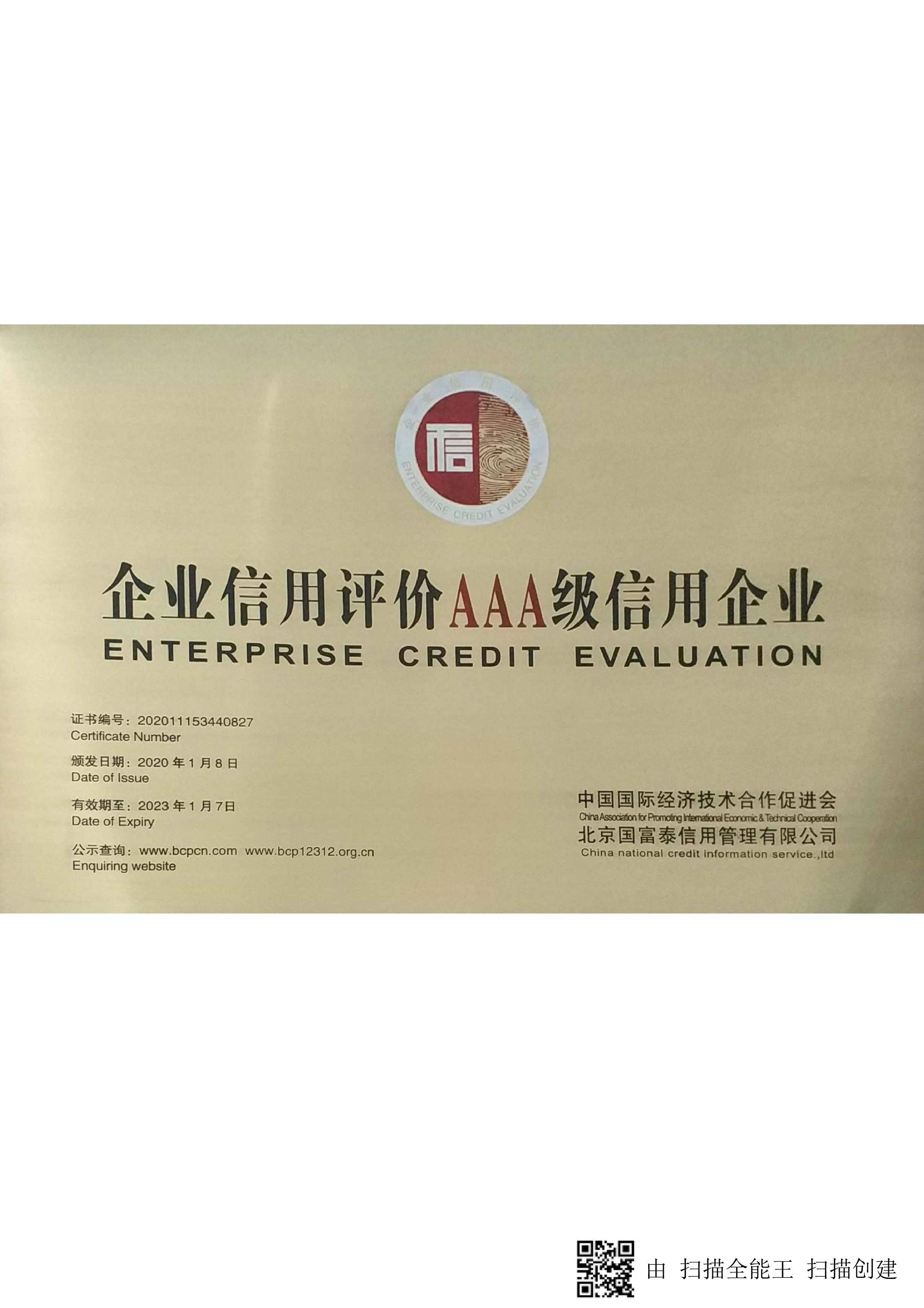 企業(yè)信用評(píng)價(jià)AAA級(jí)信用企業(yè)