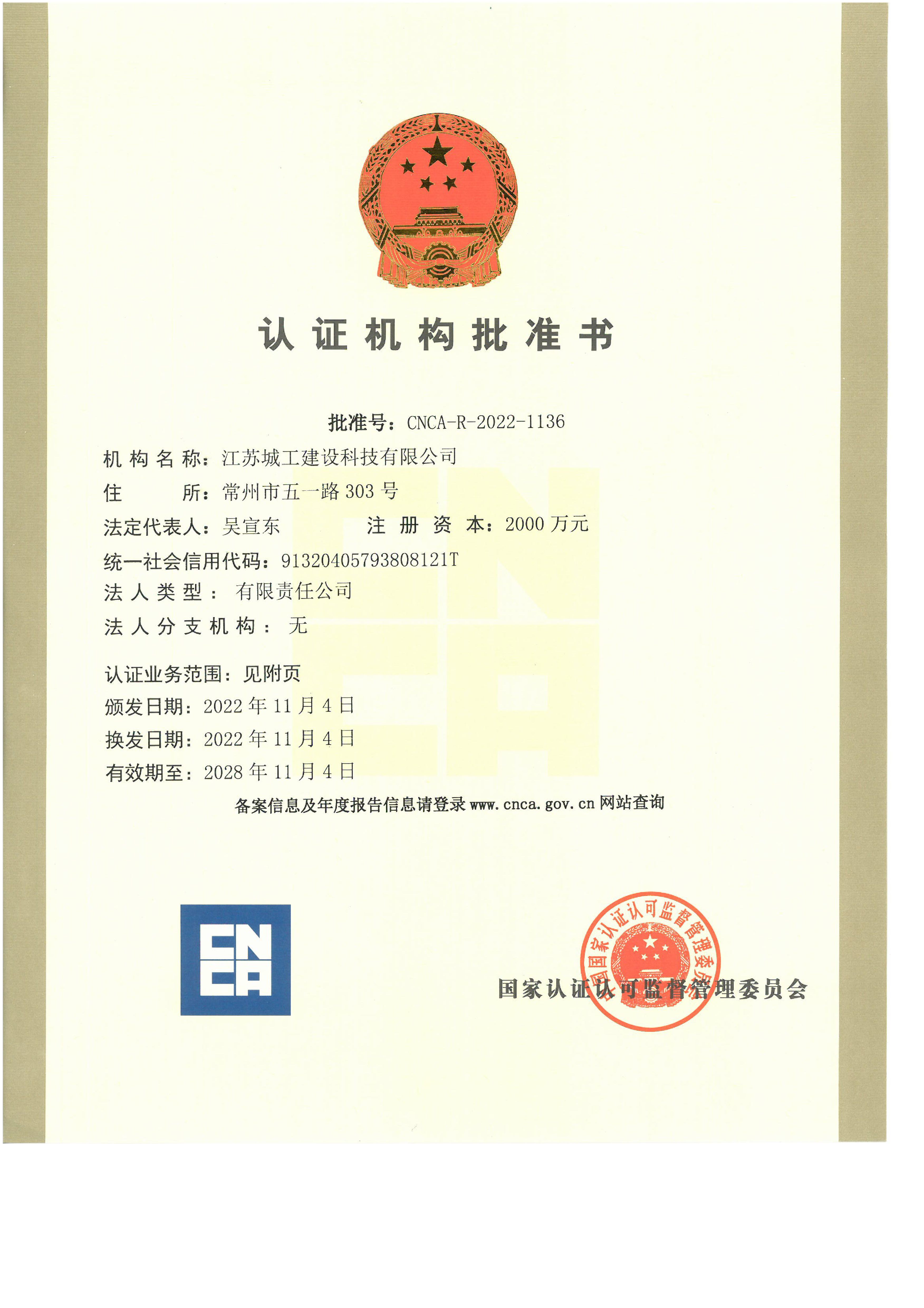 認(rèn)證機(jī)構(gòu)批準(zhǔn)書